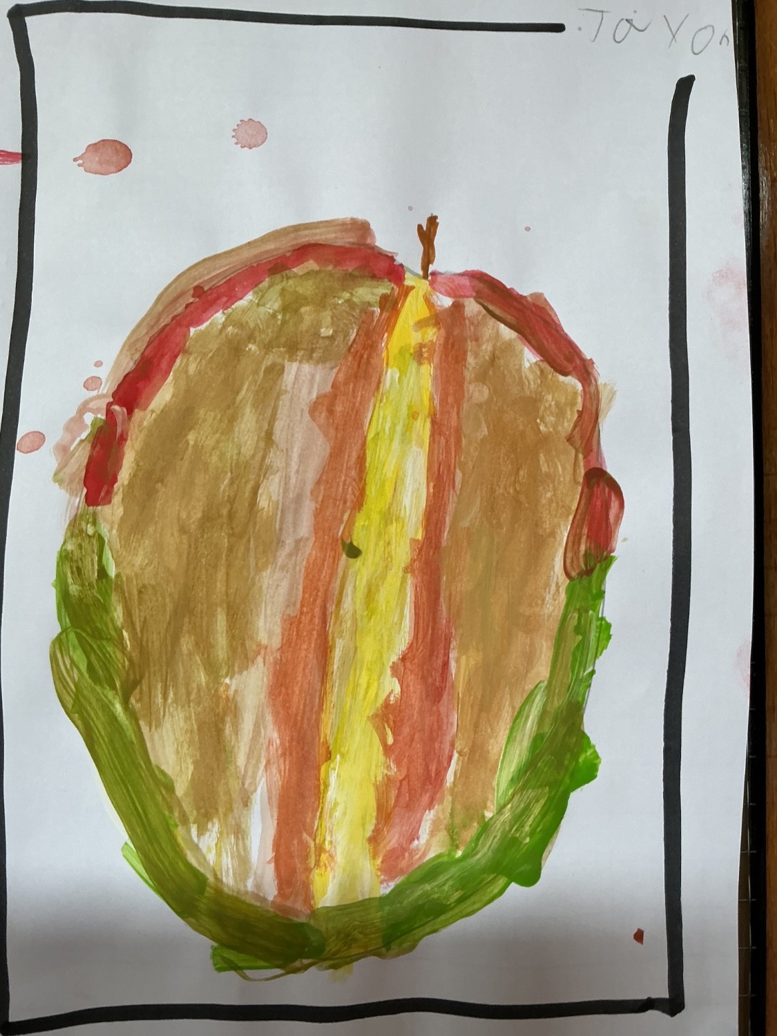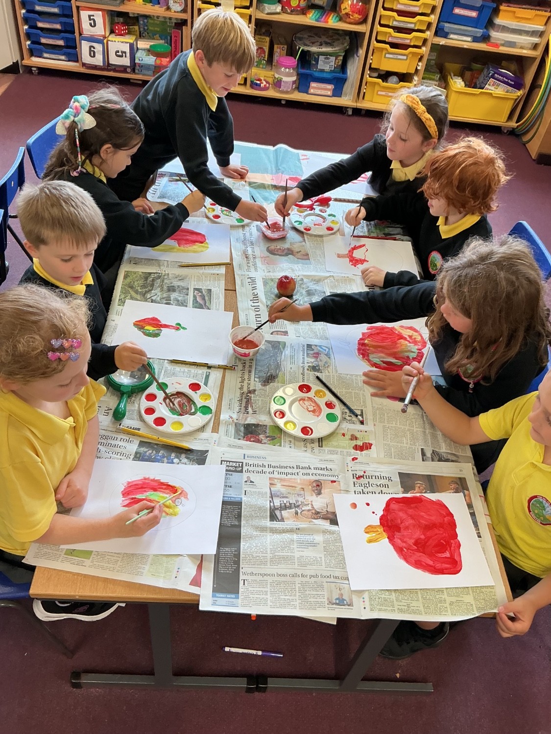 We picked apples from our school tree, studied them up close with magnifying glasses, then sketched and painted them. By mixing colours, we created lots of different tones and shades - almost good enough to eat!