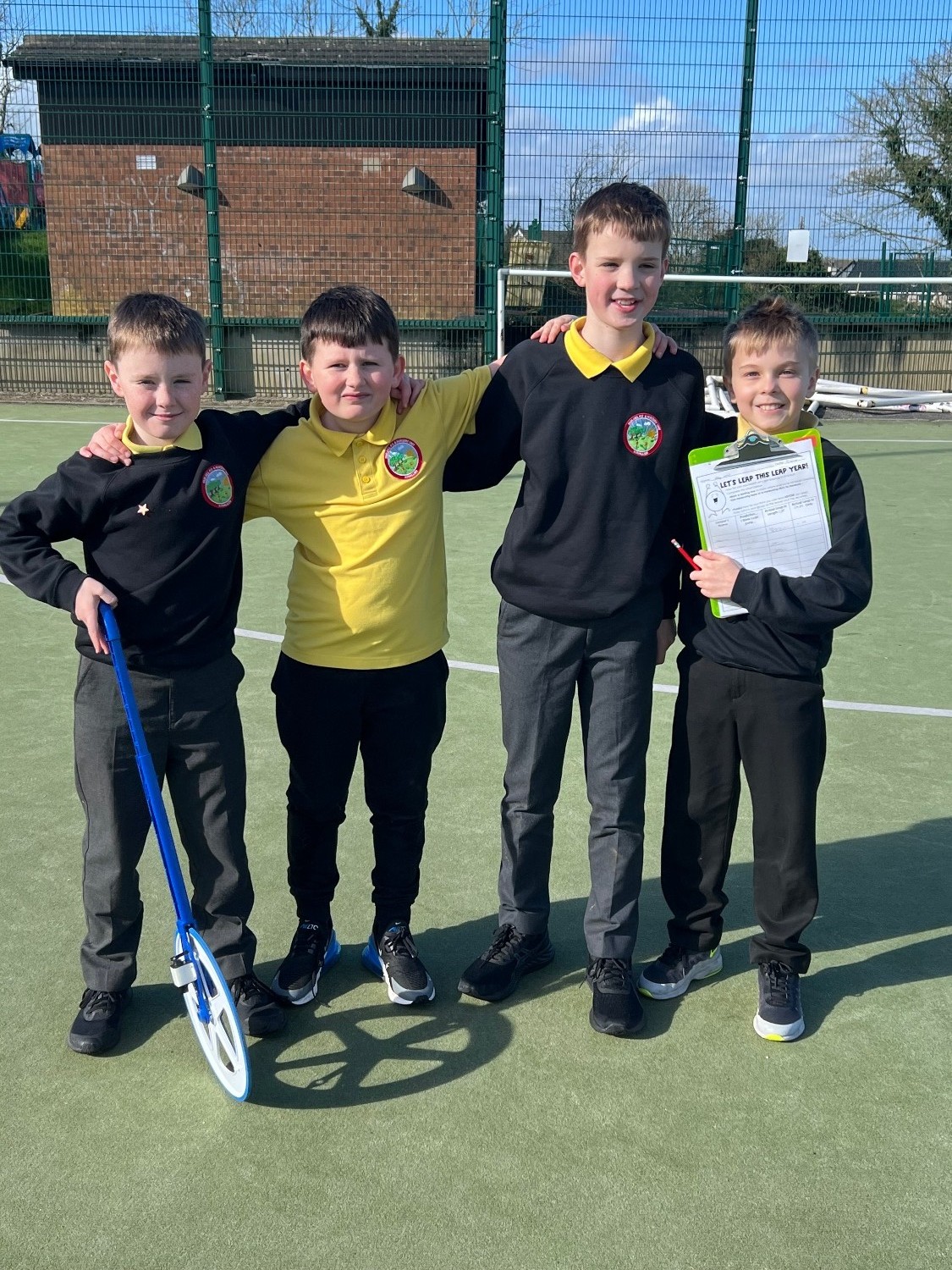 Today in P6/7 we were focusing on converting units. As it was a leap day and the sun was shining we took our maths outside to see how far we could leap!